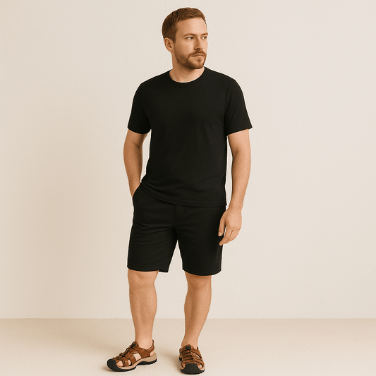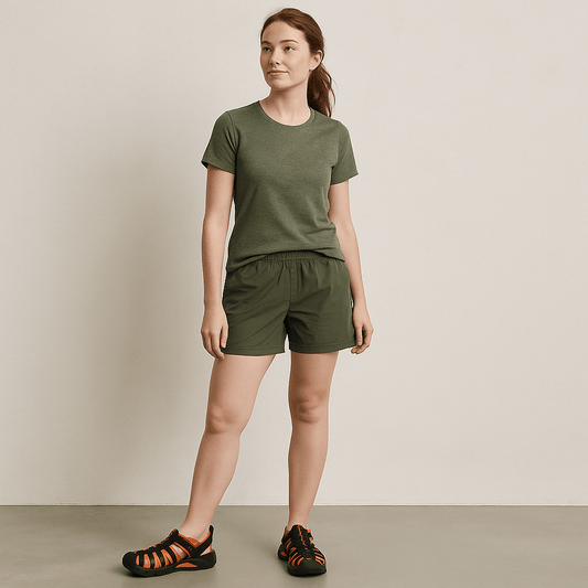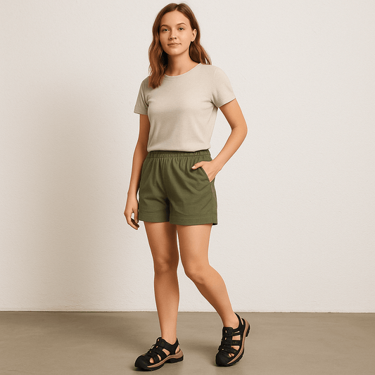 - Avec un short en lin ou une jupe midi pour rester au frais avec style